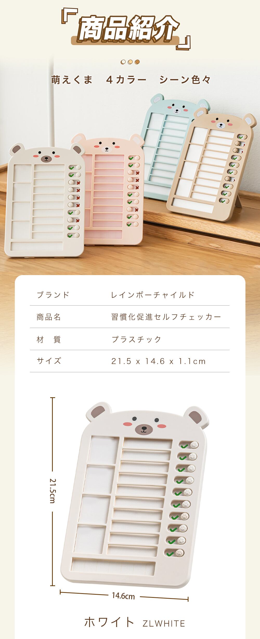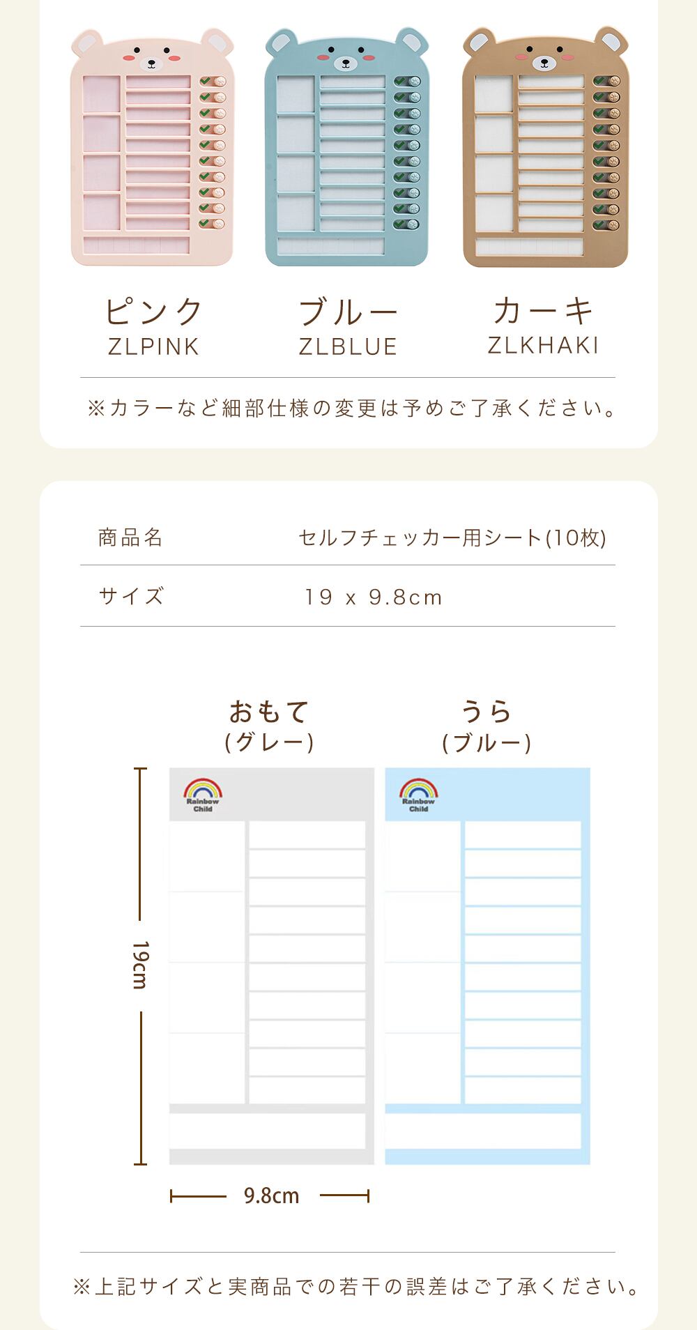 カラー ZLWHITE:ホワイト ZLPINK:ピンク ZLBLUE:ブルー ZLKHAKI:カーキ