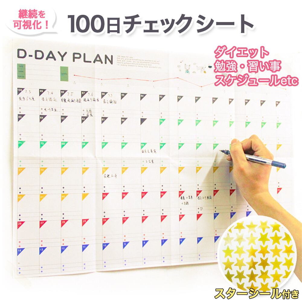 【100日チェックシート 1枚お試しセット】スターシール付き スケジュール表 可視化シート 100日計画 短期計画 ダイエット 受験勉強 試験勉強 資格 試験 大学受験 習慣化促進 やる気 モチベーション 維持 継続 プランナー 目標達成 カウントダウン