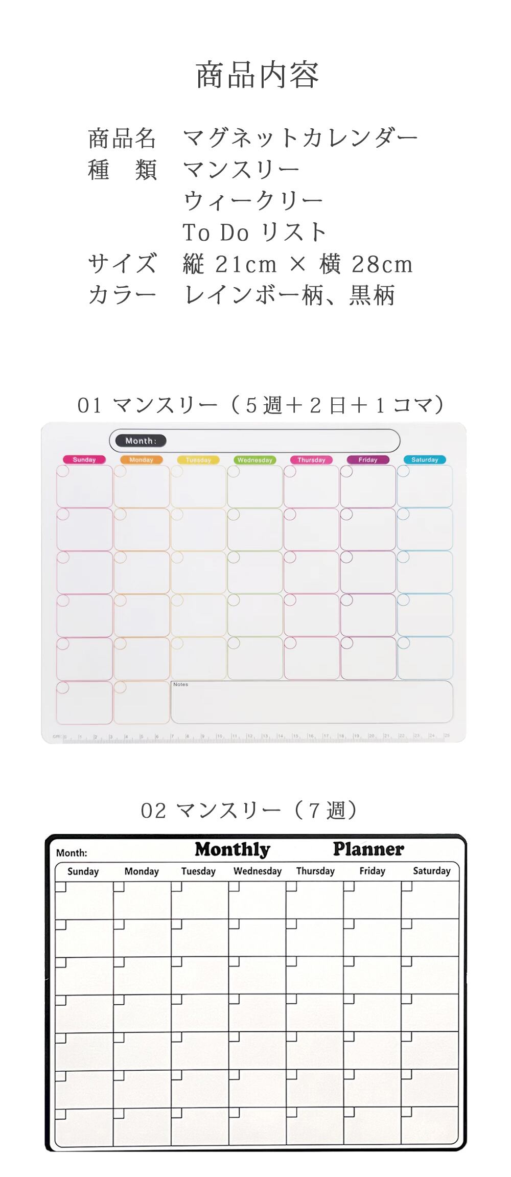 特徴 ゴム磁石で金属素材にくっつくマンスリーカレンダー。土曜日始まりの月でも1ヶ月分がきちんとおさまる5週+2日のマグネットカレンダー、そして7週がまるまる入る2種類から。