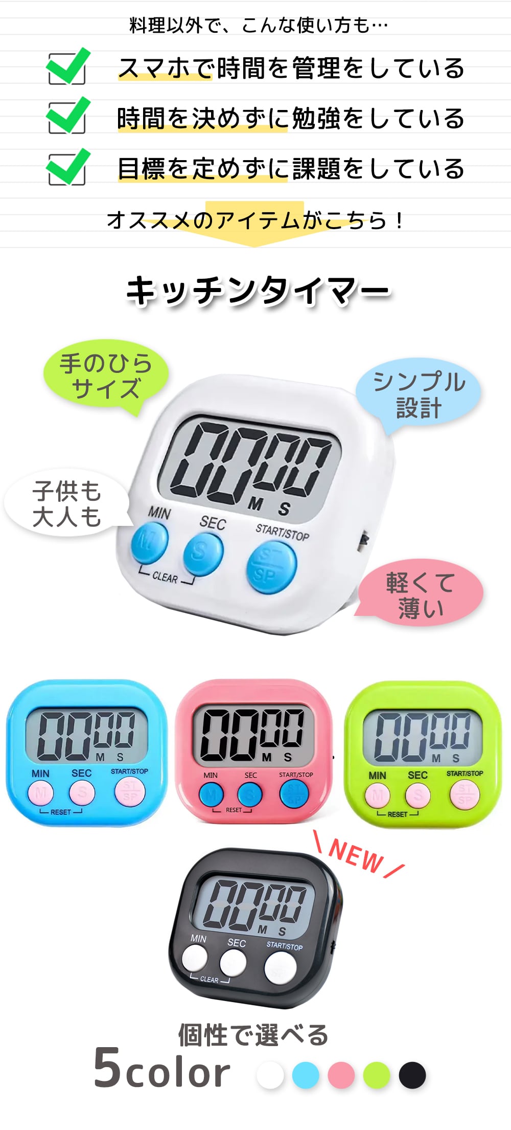 キッチン タイマー シンプル 学習 大画面 勉強 学習用 料理 子供 かわいい マグネット おしゃれ デジタルタイマー 学生 受験生 勉強 集中力 時間を意識 タイムラプス キッチンタイマー スタンド 磁石 カウントダウン 電池式 送料無料