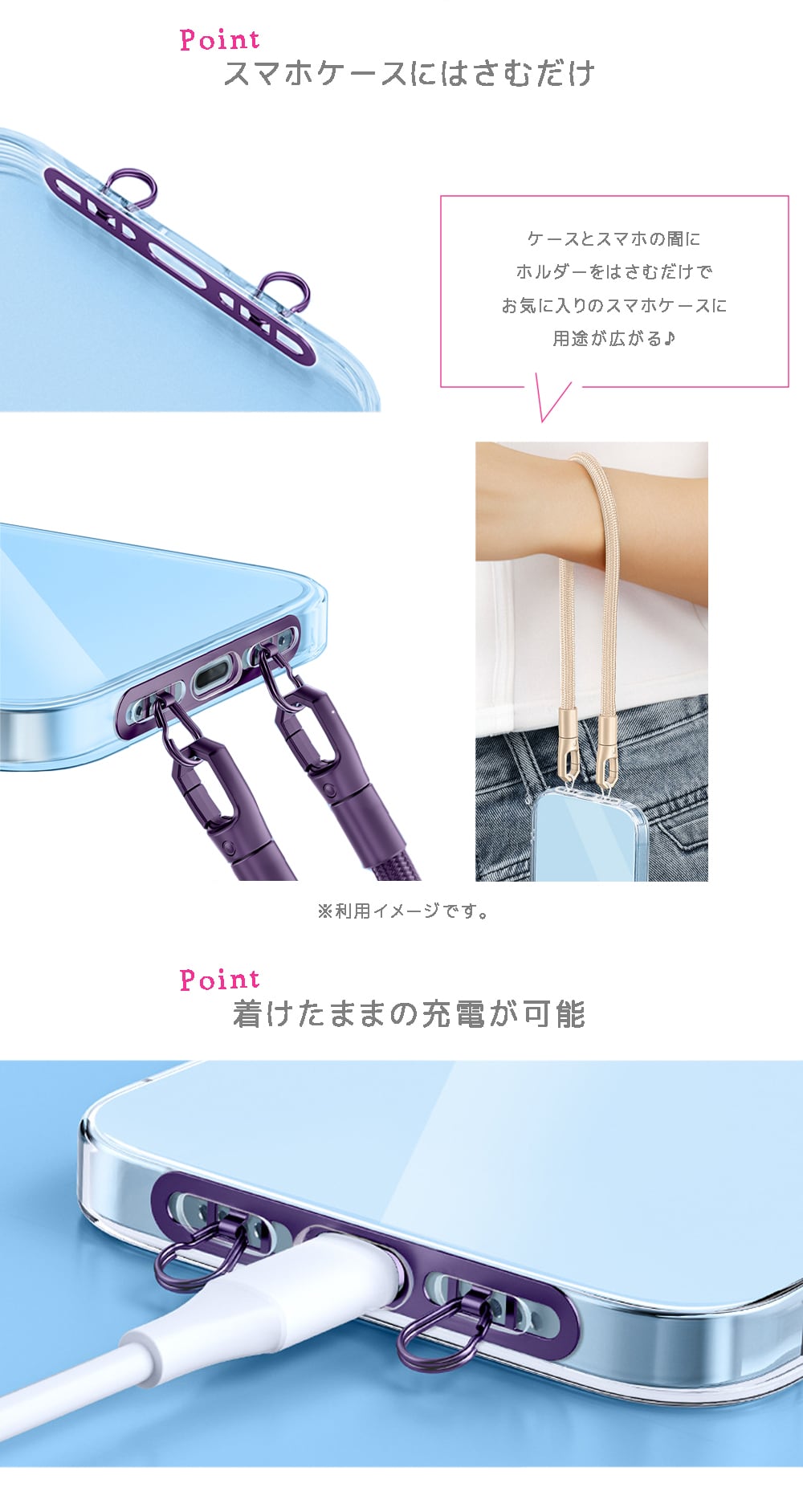 ストラップホルダー ホルダーのみ iface アイフェイス 対応 ステンレス 全15種類 スマホ用 挟むだけ クリアホルダー スマホ ホルダー 単品 別売り 肩掛け
