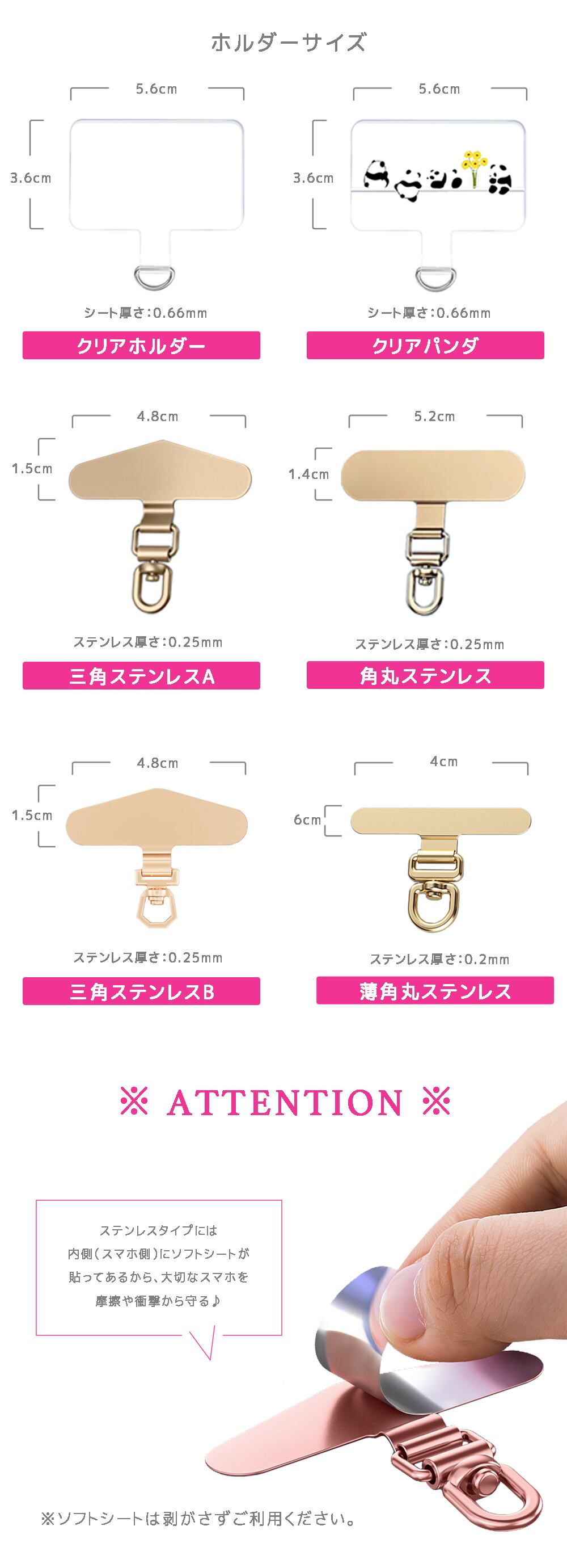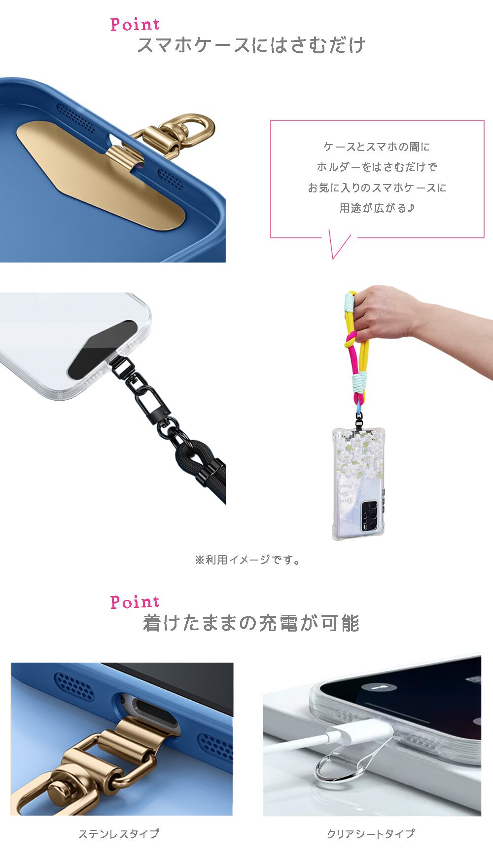 ストラップホルダー ホルダーのみ ステンレス 全10種類 スマホ用 挟むだけ クリアホルダー スマホ ホルダー 単品 別売り 肩掛け スマホストラップ