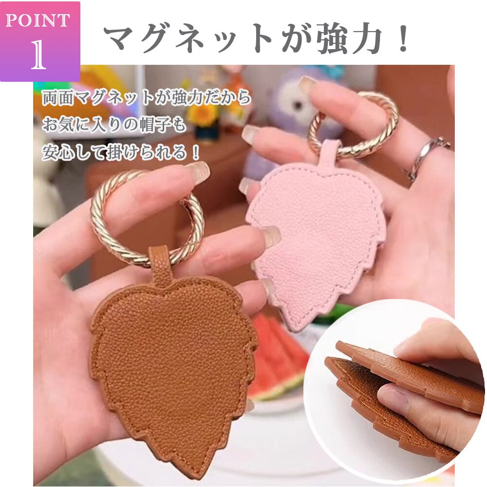 ハットクリップ 帽子クリップ キャップクリップ 帽子収納ホルダー キーホルダー 強力マグネット紛失防止 磁石 レザー 葉型 ハート型 持ち歩き 吊り下げ 帽子フック 鞄アクセサリー メガネクリップ 眼鏡持ち運び ギフト